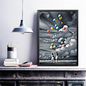 Quadro Decorativo Crianças Com Balões Coloridos 33X24Cm