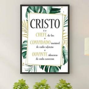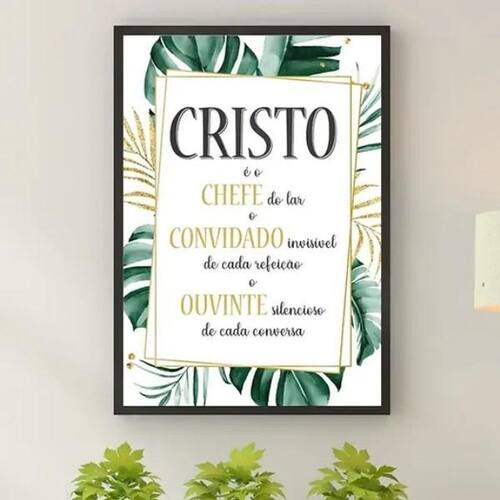 Quadro decorativo cristo é o chefe do lar 45x34cm Cor: moldura preta Informações do produto tire todas as suas dúvidas no descritivo abaixo: decoração para quarto, sala, cozinha, escritório, área gourmet e muito mais. Chega de paredes vazias. Medidas - cada peça tem 45x34cm a3 . Material do papel - papel fotográfico brilhante de altíssima resolução acabamento - todos os quadros são acompanhados de uma película de acetato para proteção da imagem. - os quadros são embalados de forma segura com plástico bolha com camada dupla de acordo com o tamanho dos quadros. - de 3 meses. Meu quadro chegou. Como posso fixá-lo Você precisa apenas de um martelo e um prego, pois os quadros já vão acompanhados de penduradores. Esta é a forma mais indicada. Caso prefira, você pode utilizar uma fita dupla face neste caso, sugerimos de alta qualidade para evitar que descole e seu quadro caia . Como posso limpar meu quadro A limpeza é feita como um móvel comum da sua casa. Apenas um pano seco ou espanador são suficientes para tal Marca: Não Informado