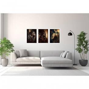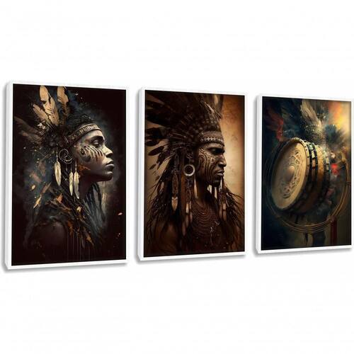 Quadro Decorativo Cultura Indígena Com Moldura Branco