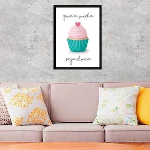 O Quadro Decorativo Cupcake - Que A Vida Seja Doce da Quadros On-Line é uma excelente opção para decorar seu ambiente, tornando-o mais aconchegante, bonito e com muito estilo. Para facilitar na instalação, o quadro já vem com pendurador que pode ser removido com facilidade. O quadro é produzido com papel fotográfico brilhante de alta resolução e acompanha uma película de acetato para proteção da imagem. Além disso, vem com moldura em madeira maciça e pendurador móvel que pode ser retirado facilmente caso deseje fixar com fita dupla face. Características: - Quadro com 34x23cm com moldura - Moldura em madeira maciça preta - Produzido em papel fotográfico brilhante - Acompanha película de acetato Especificações Técnicas Produto: Quadro Decorativo Marca: Quadros On-Line Modelo: Cupcake - Que A Vida Seja Doce Material: Papel Fotográfico Acabamento: Brilhante Acompanha: Película de acetato para proteção Instalação: Acompanha pendurador móvel Tamanho unidade: 34 x 23 cm : 3 meses Limpeza e conservação Para manter seus quadros sempre limpos e bem conservados a limpeza deve ser feita como em um móvel comum da sua casa. Apenas um pano seco ou um espanador já é suficiente para retirar o pó que pode se acumular nos quadros. Marca: Não Informado