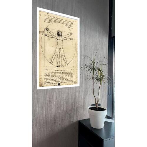 Quadro decorativo da vinci o homem vitruviano - 70x50cm Cor: moldura branca Informações do produto tire todas as suas dúvidas no descritivo abaixo: decoração para quarto, sala, cozinha, escritório, área gourmet e muito mais. Chega de paredes vazias medidas - cada peça tem 70x50cm . Material do papel - papel fotográfico brilhante de altíssima resolução acabamento - todos os quadros são acompanhados de vidro para proteção da imagem. - moldura em madeira maciça na cor preta ou branca conforme produto escolhido e pendurador. - os quadros são embalados de forma segura com plástico bolha com camada dupla de acordo com o tamanho dos quadros. - de 3 meses. Meu quadro chegou. Como posso fixá-lo Você precisa apenas de um martelo e um prego, pois os quadros já vão acompanhados de penduradores. Esta é a forma mais indicada. Como posso limpar meu quadro A limpeza é feita como um móvel comum da sua casa. Apenas um pano seco ou espanador são suficientes para tal Marca: Não Informado