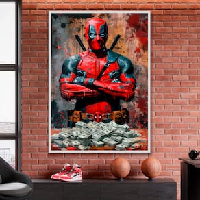 Quadro Decorativo Deadpool Money Moldura Branca e Vidro - 180x105cm -