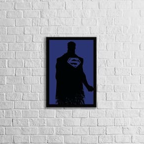 Quadro Decorativo Decorativo Silhueta Super Man - Tamanho: A4 (20 x 30) / Acabamento: Película de acetato / Moldura: Madeira preta