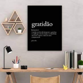 Quadro decorativo definição de gratidão 33x24cm - com vidro Moldura: madeira preta Informações do produto tire todas as suas dúvidas no descritivo abaixo: decoração para quarto, sala, cozinha, escritório, área gourmet e muito mais. Chega de paredes vazias medidas - cada peça tem 33x24cm a4 . Material do papel - papel fotográfico brilhante de altíssima resolução acabamento - todos os quadros são acompanhados de vidro para proteção da imagem. - moldura em madeira maciça na cor preta e pendurador . - os quadros são embalados de forma segura com plástico bolha com camada dupla de acordo com o tamanho dos quadros. Garantia - garantia de 3 meses. Meu quadro chegou. Como posso fixá-lo Você precisa apenas de um martelo e um prego, pois os quadros já vão acompanhados de penduradores. Esta é a forma mais indicada. Como posso limpar meu quadro A limpeza é feita como um móvel comum da sua casa. Apenas um pano seco ou espanador são suficientes para tal Ean: 7895142246606