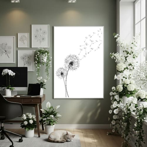Quadro Decorativo Dentes De Leão 70x50cm Mold Branca