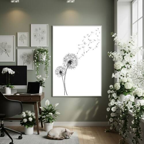 Quadro Decorativo Dentes De Leão 70x50cm Mold Preta