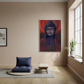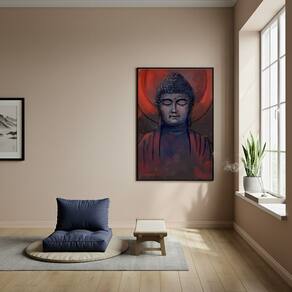 Quadro Decorativo Desenho Buda Tons Escuros - 70x50cm - Cor: Moldura Preta