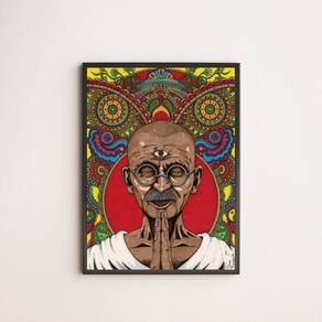 Especificações técnicas Marca: Quadros On-Line Modelo: Desenho Gandhi Material: Papel fotográfico brilhante Acabamento: Película de acetato Moldura: Madeira Cor moldura: Branca Tamanho: 45 x 34 cm A3 Fixação: Prego ou fita dupla face de alta qualidade Acompanha pendurador: Sim Garantia: 3 meses