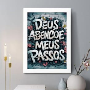 Quadro decorativo deus abençoe meus passos 24x18cm - com vidro Cor: moldura preta Informações do produto tire todas as suas dúvidas no descritivo abaixo: decoração para quarto, sala, cozinha, escritório, área gourmet e muito mais. Chega de paredes vazias medidas - cada peça tem 24x18cm a5 . Material do papel - papel fotográfico brilhante de altíssima resolução acabamento - todos os quadros são acompanhados de vidro para proteção da imagem. - moldura em madeira maciça na cor preta ou branca conforme produto escolhido e pendurador . - os quadros são embalados de forma segura com plástico bolha com camada dupla de acordo com o tamanho dos quadros. Garantia - garantia de 3 meses. Meu quadro chegou. Como posso fixá-lo Você precisa apenas de um martelo e um prego, pois os quadros já vão acompanhados de penduradores. Esta é a forma mais indicada. Como posso limpar meu quadro A limpeza é feita como um móvel comum da sua casa. Apenas um pano seco ou espanador são suficientes para tal