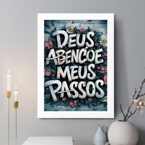 Quadro decorativo deus abençoe meus passos 45x34cm - com vidro Cor: moldura branca Informações do produto tire todas as suas dúvidas no descritivo abaixo: decoração para quarto, sala, cozinha, escritório, área gourmet e muito mais. Chega de paredes vazias medidas - cada peça tem 45x34cm a3 . Material do papel - papel fotográfico brilhante de altíssima resolução acabamento - todos os quadros são acompanhados de vidro para proteção da imagem. - moldura em madeira maciça na cor preta ou branca conforme produto escolhido e pendurador . - os quadros são embalados de forma segura com plástico bolha com camada dupla de acordo com o tamanho dos quadros. Garantia - garantia de 3 meses. Meu quadro chegou. Como posso fixá-lo Você precisa apenas de um martelo e um prego, pois os quadros já vão acompanhados de penduradores. Esta é a forma mais indicada. Como posso limpar meu quadro A limpeza é feita como um móvel comum da sua casa. Apenas um pano seco ou espanador são suficientes para tal