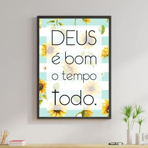 Especificações técnicas Marca: Quadros On-Line Modelo: Deus É Bom O Tempo Todo - Girassol Material: Papel fotográfico brilhante Acabamento: Película de acetato Moldura: Madeira Cor moldura: Preto Tamanho: 45 x 34 cm A3 Fixação: Prego ou fita dupla face de alta qualidade Acompanha pendurador: Sim Conteúdo: 01 Quadro Decorativo Garantia: 3 meses