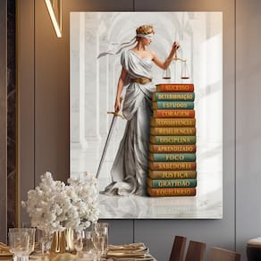 Quadro Decorativo Deusa da Justiça Livros Moldura Dourada - 118x78cm -