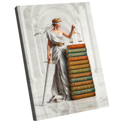 Quadro Decorativo Deusa da Justiça Livros Borda Infinita - 180x105cm -