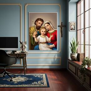 Quadro Decorativo Devoção à Sagrada Família - 70x50cm - Cor: Moldura Preta