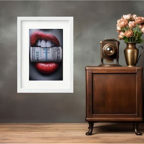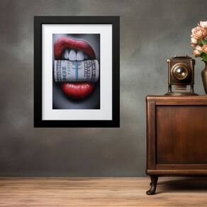 Quadro Decorativo Dinheiro Boca - 60x48cm - Cor: Moldura Branca