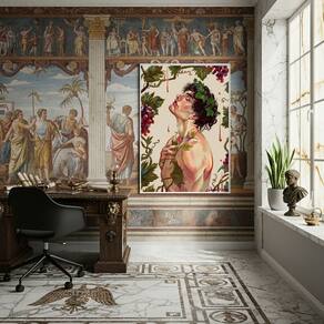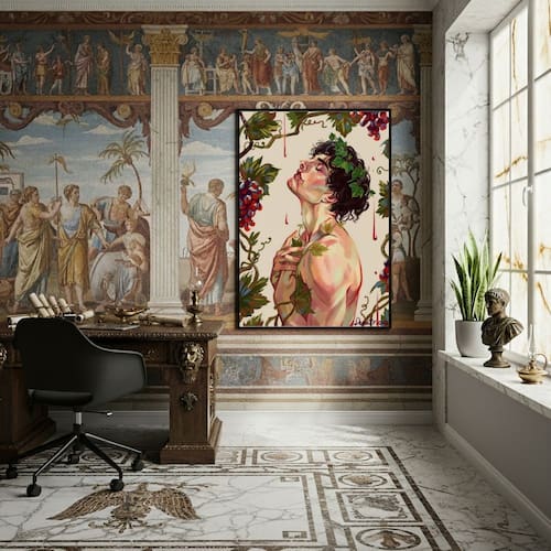 Quadro Decorativo Dionísio - O Deus Grego do Vinho-70x50cm - Cor: Moldura Branca