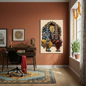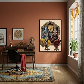 Quadro Decorativo Divindades Hindus Rama e Sita - 70x50cm - Cor: Moldura Branca