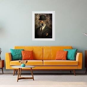 Quadro decorativo dog monóculo - 60x48cm Moldura: madeira branca Informações do produto tire todas as suas dúvidas no descritivo abaixo: decoração para quarto, sala, cozinha, escritório, área gourmet e muito mais. Chega de paredes vazias medidas - cada peça tem 60x48cm . Material do papel - papel fotográfico brilhante de altíssima resolução acabamento - todos os quadros são acompanhados de vidro para proteção da imagem. - moldura em madeira maciça na cor preta ou branca conforme produto escolhido e pendurador. - paspatur branco com 7cm de largura - os quadros são embalados de forma segura com plástico bolha com camada dupla de acordo com o tamanho dos quadros. Garantia - garantia de 3 meses. Meu quadro chegou. Como posso fixá-lo Você precisa apenas de um martelo e um prego, pois os quadros já vão acompanhados de penduradores. Esta é a forma mais indicada. Como posso limpar meu quadro A limpeza é feita como um móvel comum da sua casa. Apenas um pano seco ou espanador são suficientes para tal