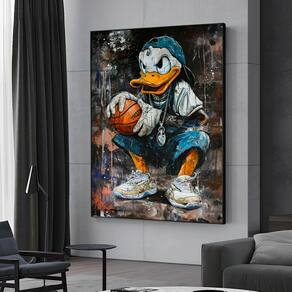 Quadro Decorativo Donald Basquete Moldura Preta e Vidro - 180x105cm -