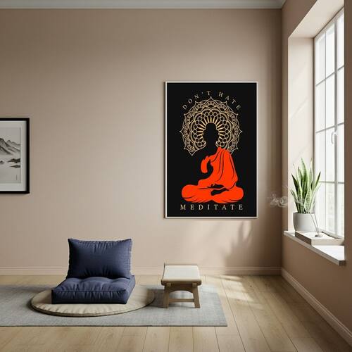 Quadro Decorativo Don`t Hate! Meditate - Buda - 70x50cm - Cor: Moldura Branca