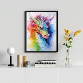 Quadro decorativo dragão colorido aquarela 24x18cm Moldura: madeira preta Informações do produto tire todas as suas dúvidas no descritivo abaixo: decoração para quarto, sala, cozinha, escritório, área gourmet e muito mais. Chega de paredes vazias medidas - cada peça tem 24x18cm a5 . Material do papel - papel fotográfico brilhante de altíssima resolução acabamento - todos os quadros são acompanhados de uma película de acetato para proteção da imagem. - os quadros são embalados de forma segura com plástico bolha com camada dupla de acordo com o tamanho dos quadros. Garantia - garantia de 3 meses. Meu quadro chegou. Como posso fixá-lo Você precisa apenas de um martelo e um prego, pois os quadros já vão acompanhados de penduradores. Esta é a forma mais indicada. Caso prefira, você pode utilizar uma fita dupla face neste caso, sugerimos de alta qualidade para evitar que descole e seu quadro caia . Como posso limpar meu quadro A limpeza é feita como um móvel comum da sua casa. Apenas um pano seco ou espanador são suficientes para tal Ean: 7899214296582