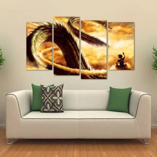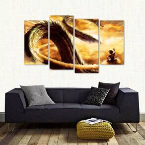 Quadro Decorativo Dragon Ball Goku Quarto Em Tecido 4 Peças