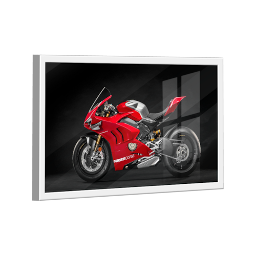 Quadro Ducati Panigale V4 -- BR ARTES Moldura Branca e Vidro - Pequeno 60x40 -