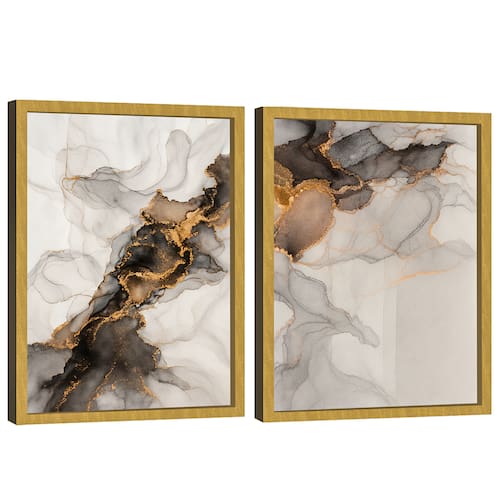 Quadro Decorativo Duo Abstrato Mármore Moderno Moldura Dourada - 118x78cm -