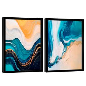 Quadro Decorativo Duo Abstrato Ondas Suave Moldura Dourada e Vidro - 84x54 -