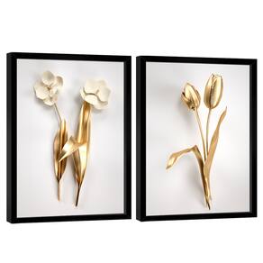Quadro Decorativo Duo Flores de Ouro Moldura Preta e Vidro - 180x105 -