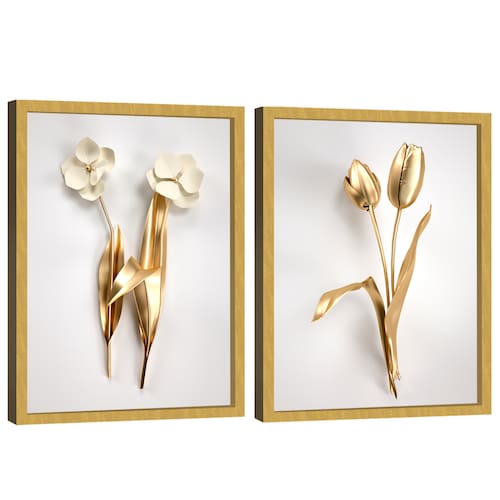 Quadro Decorativo Duo Flores de Ouro Moldura Dourada - 60x40 -