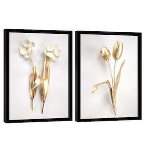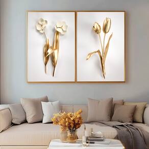 Quadro Decorativo Duo Flores de Ouro Borda Infinita - 60x40 -