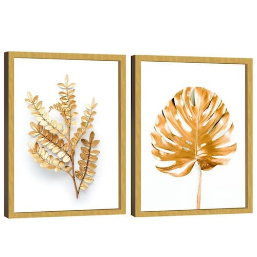Quadro Decorativo Duo Folhagem Ouro Quadro Decorativo Duo Folhagem Ouro Moldura Preta - 84x54 - - Qualidade Premium (padrão museu)