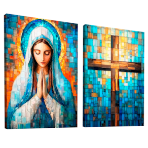Quadro Decorativo Duo Maria e Cruz em Grid Art Borda Infinita - 84x54 -