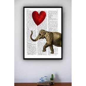 Quadro Decorativo Elefante Balão de Coração - 70x50cm - Cor: Moldura Preta
