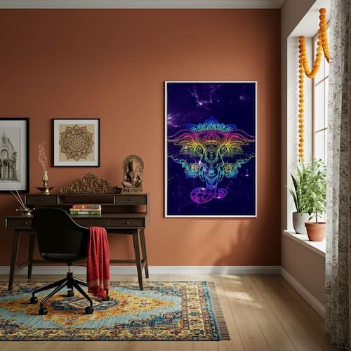 Quadro Decorativo Elefante em Estilo Mandala - 70x50cm - Cor: Moldura Branca