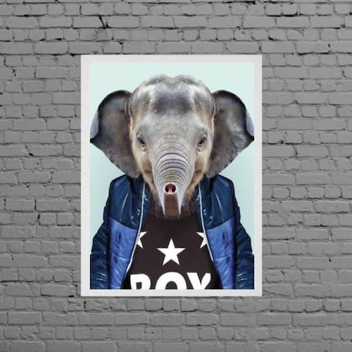 Quadro decorativo elefante fashion 45x34cm - com vidro Moldura: madeira branca Informações do produto tire todas as suas dúvidas no descritivo abaixo: decoração para quarto, sala, cozinha, escritório, área gourmet e muito mais. Chega de paredes vazias medidas - cada peça tem 45x34cm a3 . Material do papel - papel fotográfico brilhante de altíssima resolução acabamento - todos os quadros são acompanhados de vidro para proteção da imagem. - moldura em madeira maciça na cor preta e pendurador . - os quadros são embalados de forma segura com plástico bolha com camada dupla de acordo com o tamanho dos quadros. - de 3 meses. Meu quadro chegou. Como posso fixá-lo Você precisa apenas de um martelo e um prego, pois os quadros já vão acompanhados de penduradores. Esta é a forma mais indicada. Como posso limpar meu quadro A limpeza é feita como um móvel comum da sua casa. Apenas um pano seco ou espanador são suficientes para tal