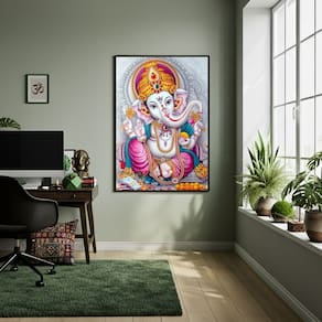Quadro Decorativo Elefante Ganesha Baby - 70x50cm - Cor: Moldura Branca