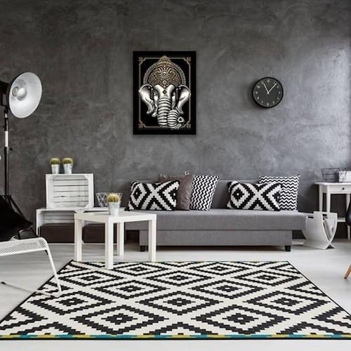 Quadro Decorativo Elefante Ganesha - Tamanho: A4 (20 x 30) / Acabamento: Película de acetato / Moldura: Madeira preta