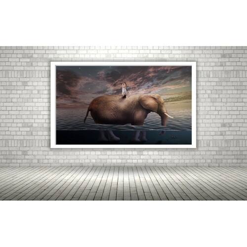 Quadro Decorativo Elefante Surrealismo - 70x50cm - Cor: Moldura Preta