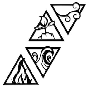Especificações Técnicas: Medidas: 26x 26 cm cada quadro Material: mdf 3mm Cor: preto Tema: natureza Formas de instalação: basta utilizar fitas dupla face Quantidade: 4 unidades Características específicas: cada quadro representa um elemento da natureza: água, fogo, terra e ar.