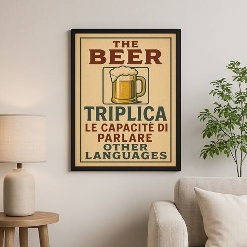 Quadro Decorativo Engraçado Cerveja 45x34cm - Cor: Moldura preta