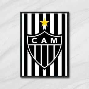 Quadro Decorativo Escudo Atlético Mg Fundo Listrado