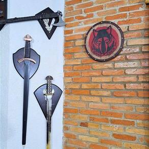 Quadro Decorativo Escudo Viking Haafingar - Solitude Lobo Skyrim Este quadro redondo temático de Skyrim é uma verdadeira obra de arte, completamente artesanal e pintado à mão. Ele apresenta o símbolo icônico do jogo, adicionando um toque de fantasia e aventura à sua decoração. Este quadro é perfeito para fãs do jogo ou entusiastas de decoração que apreciam produtos temáticos e únicos.