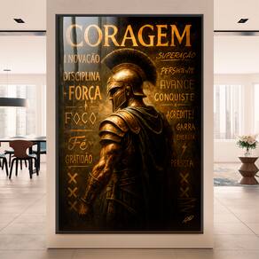 Quadro Decorativo Espartano Motivacional Moldura Dourada e Vidro - 150x100cm -