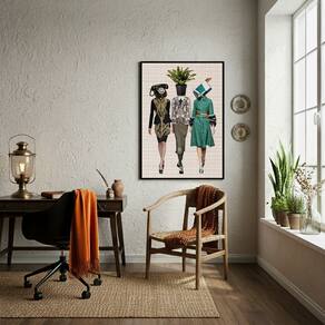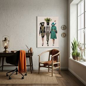 Quadro Decorativo Estilo Colagem Mulheres Retrô - 70x50cm - Cor: Moldura Branca