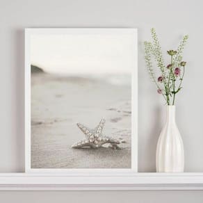 Quadro decorativo estrela do mar branca 45x34cm Moldura: madeira branca Informações do produto tire todas as suas dúvidas no descritivo abaixo: decoração para quarto, sala, cozinha, escritório, área gourmet e muito mais. Chega de paredes vazias. Medidas - cada peça tem 45x34cm a3 . Material do papel - papel fotográfico brilhante de altíssima resolução acabamento - todos os quadros são acompanhados de uma película de acetato para proteção da imagem. - os quadros são embalados de forma segura com plástico bolha com camada dupla de acordo com o tamanho dos quadros. Garantia - garantia de 3 meses. Meu quadro chegou. Como posso fixá-lo Você precisa apenas de um martelo e um prego, pois os quadros já vão acompanhados de penduradores. Esta é a forma mais indicada. Caso prefira, você pode utilizar uma fita dupla face neste caso, sugerimos de alta qualidade para evitar que descole e seu quadro caia . Como posso limpar meu quadro A limpeza é feita como um móvel comum da sua casa. Apenas um pano seco ou espanador são suficientes para tal Ean: 7893855242847