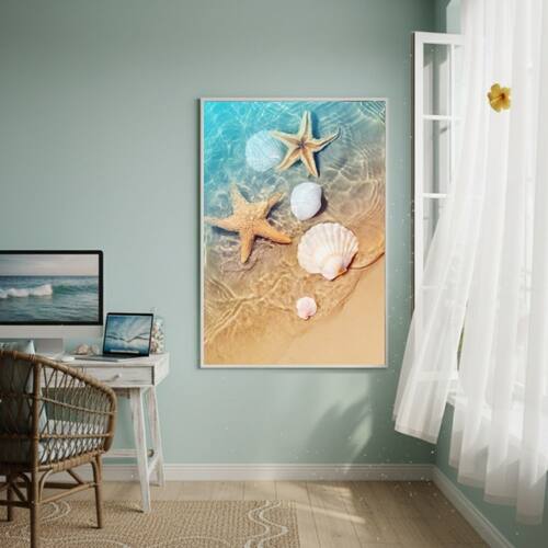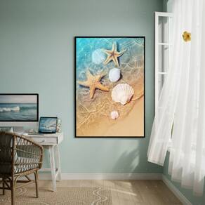 Quadro Decorativo Estrelas E Conchas-70x50cm - Cor: Moldura Preta