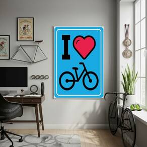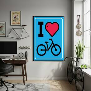 Quadro Decorativo Eu Amo Bicicleta-70x50cm - Cor: Moldura Preta