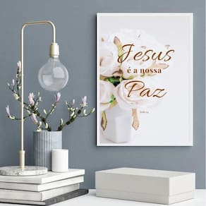 Quadro decorativo evangélico jesus é a nossa paz 24x18cm Moldura: madeira branca Informações do produto tire todas as suas dúvidas no descritivo abaixo: decoração para quarto, sala, cozinha, escritório, área gourmet e muito mais. Chega de paredes vazias medidas - cada peça tem 24x18cm a5 . Material do papel - papel fotográfico brilhante de altíssima resolução acabamento - todos os quadros são acompanhados de uma película de acetato para proteção da imagem. - os quadros são embalados de forma segura com plástico bolha com camada dupla de acordo com o tamanho dos quadros. Garantia - garantia de 3 meses. Meu quadro chegou. Como posso fixá-lo Você precisa apenas de um martelo e um prego, pois os quadros já vão acompanhados de penduradores. Esta é a forma mais indicada. Caso prefira, você pode utilizar uma fita dupla face neste caso, sugerimos de alta qualidade para evitar que descole e seu quadro caia . Como posso limpar meu quadro A limpeza é feita como um móvel comum da sua casa. Apenas um pano seco ou espanador são suficientes para tal Ean: 7899479886603